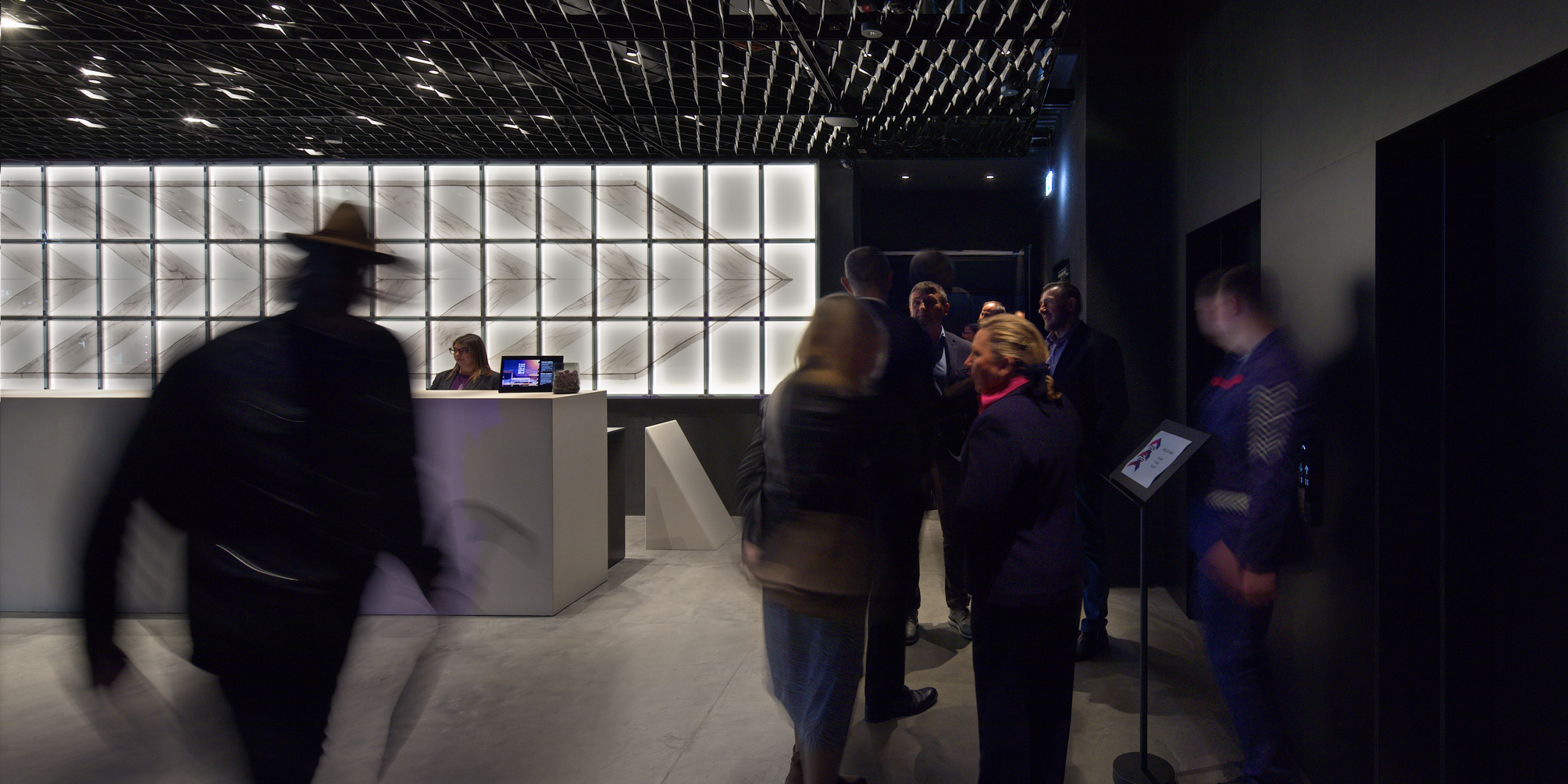 At Zonar Zagreb Hotel, bespoke laminated glass elements by Silvio and Sons are integrated throughout several public spaces, creating distinct spatial identities through textile, mirror, and light-responsive materials.
